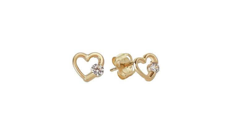 Buy Revere Kid S 9ct Yellow Gold Cz Heart Stud Earrings Kids Earrings Argos