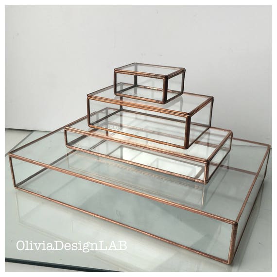 Glass box glass display box glass jewelry box wedding display box clear glass jewelry box truncated pyramid box by jacquiesummer. The lift up lid and linen lining on our glass shadow boxes make them the perfect spot for organizing jewelry or showcasing keepsakes.