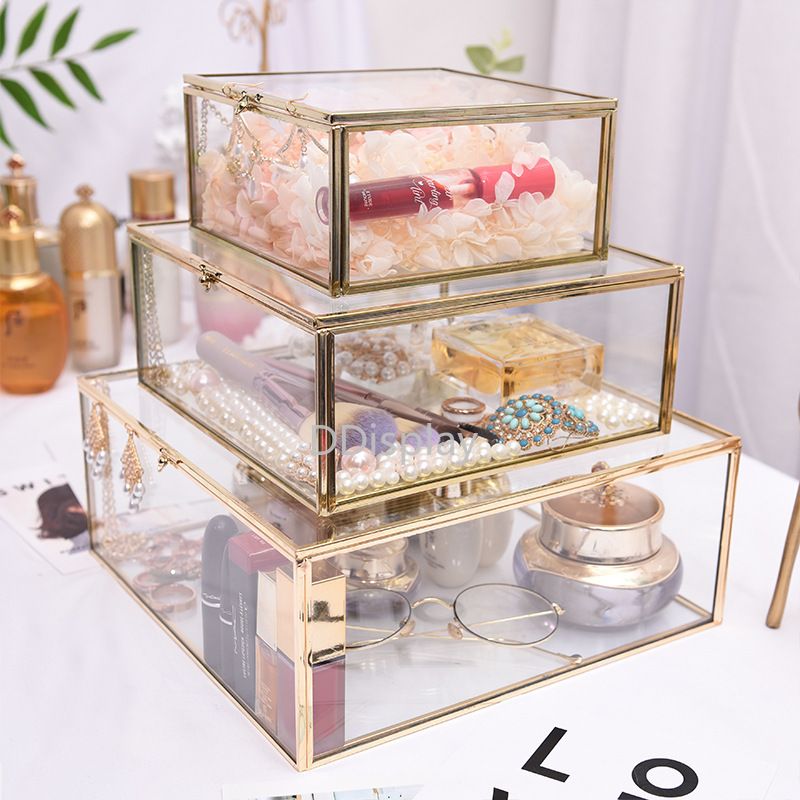 Ddisplay Vintage Square Glass Jewelry Box Retro Decorative Cosmestic Collection Box Creative Pendant Jewelry Display