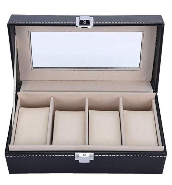 Valyria Watch Box Small 4 Mens Black Leather Display Glass Top Jewelry Case Organizer Cheap Watch Case Luxury Watch Cases From Xu254922014 7 09
