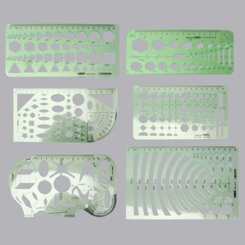 Details About 6pcs Drawing Templates Measuring Plastic Geometric Jewelry Design Rulers Green