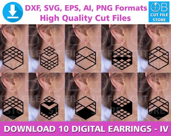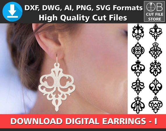 10 Digital Earring Dxf Dwg Svg Png Ai Formats Plexiglass Wooden Leather Earring Templates Jewelry Drawing Cut File Laser Cut Download Vector